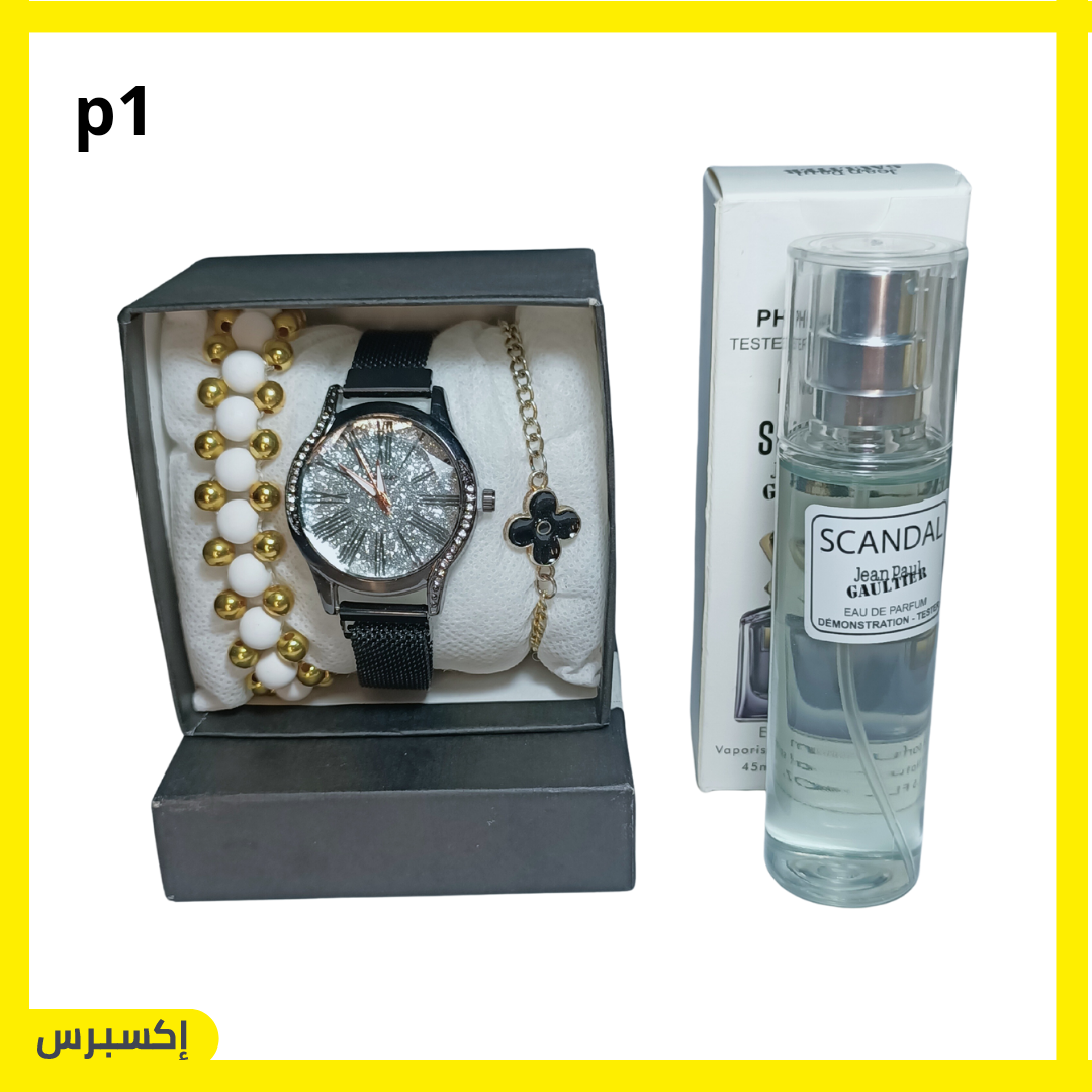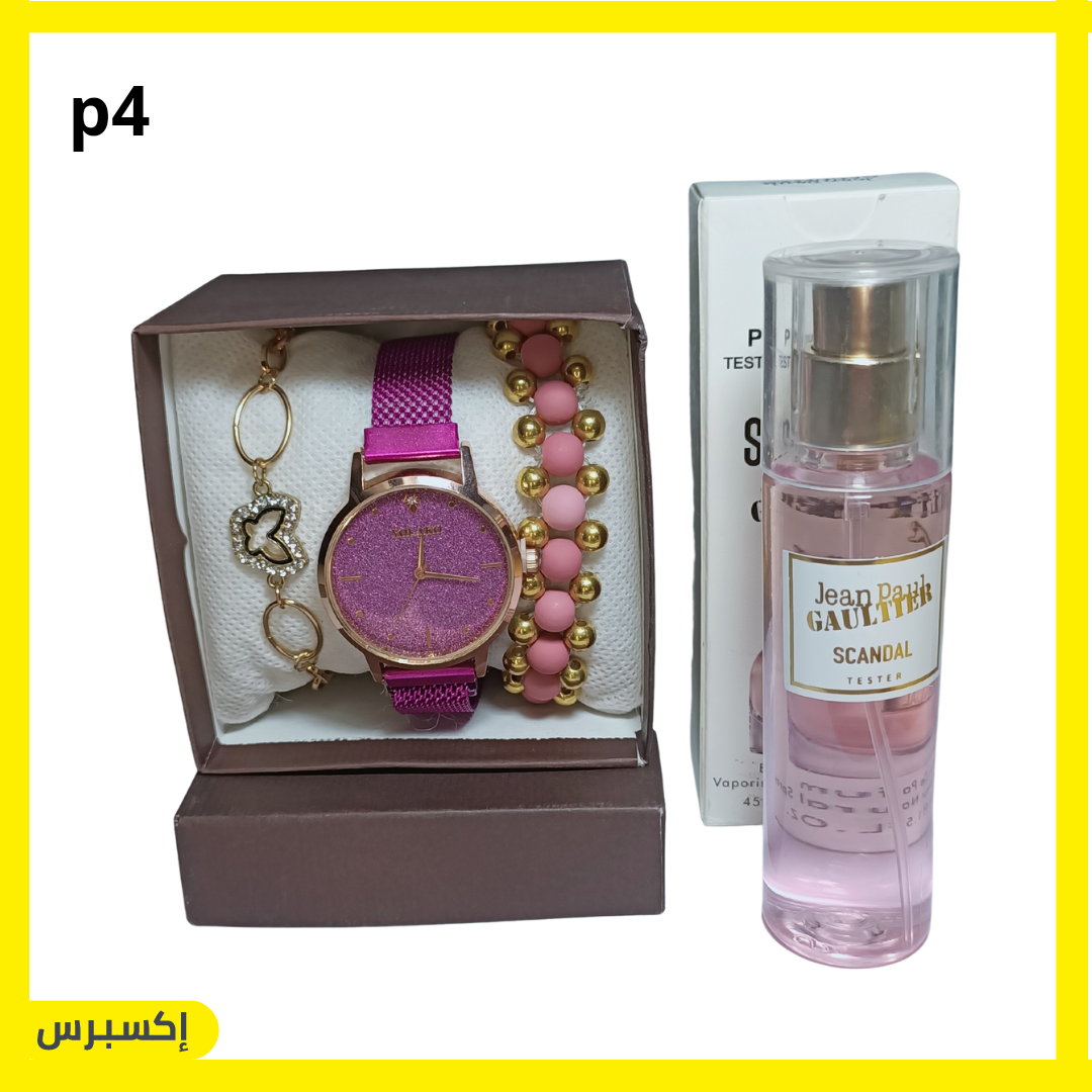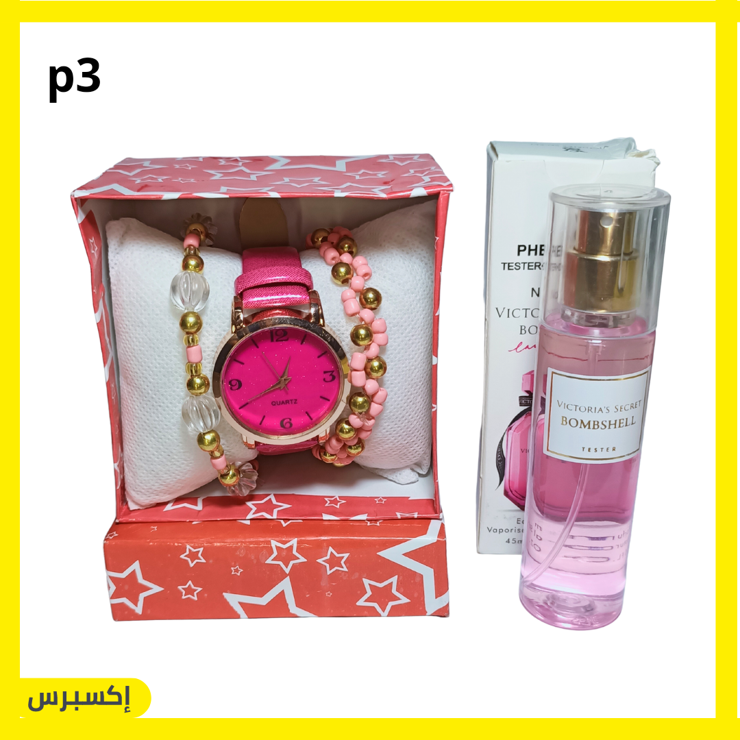 هده باقة متكونة من ساعة وعطر تستر 45 مل هو مجموعة فاخرة تجمع بين الأناقة والرقي. تتميز الساعة بتصميم أنيق وأنثوي .